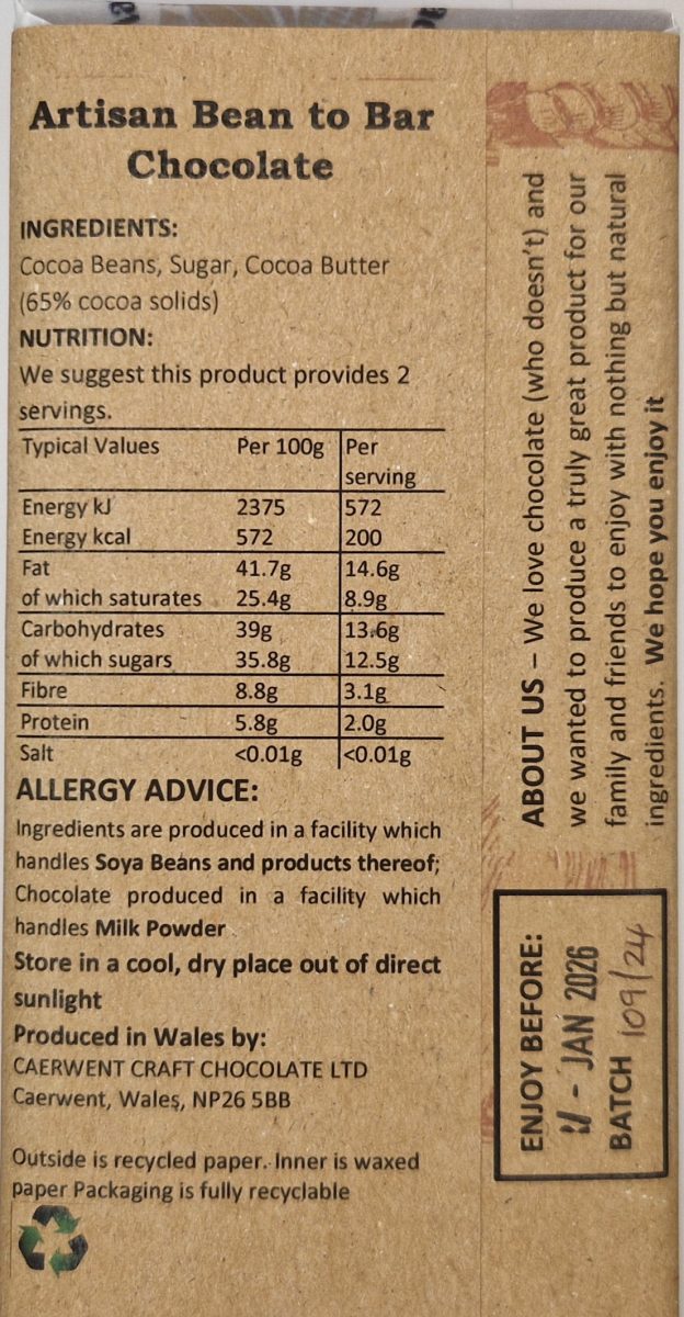 Our Peruvian dark chocolate is available in 65% 75% and 85%